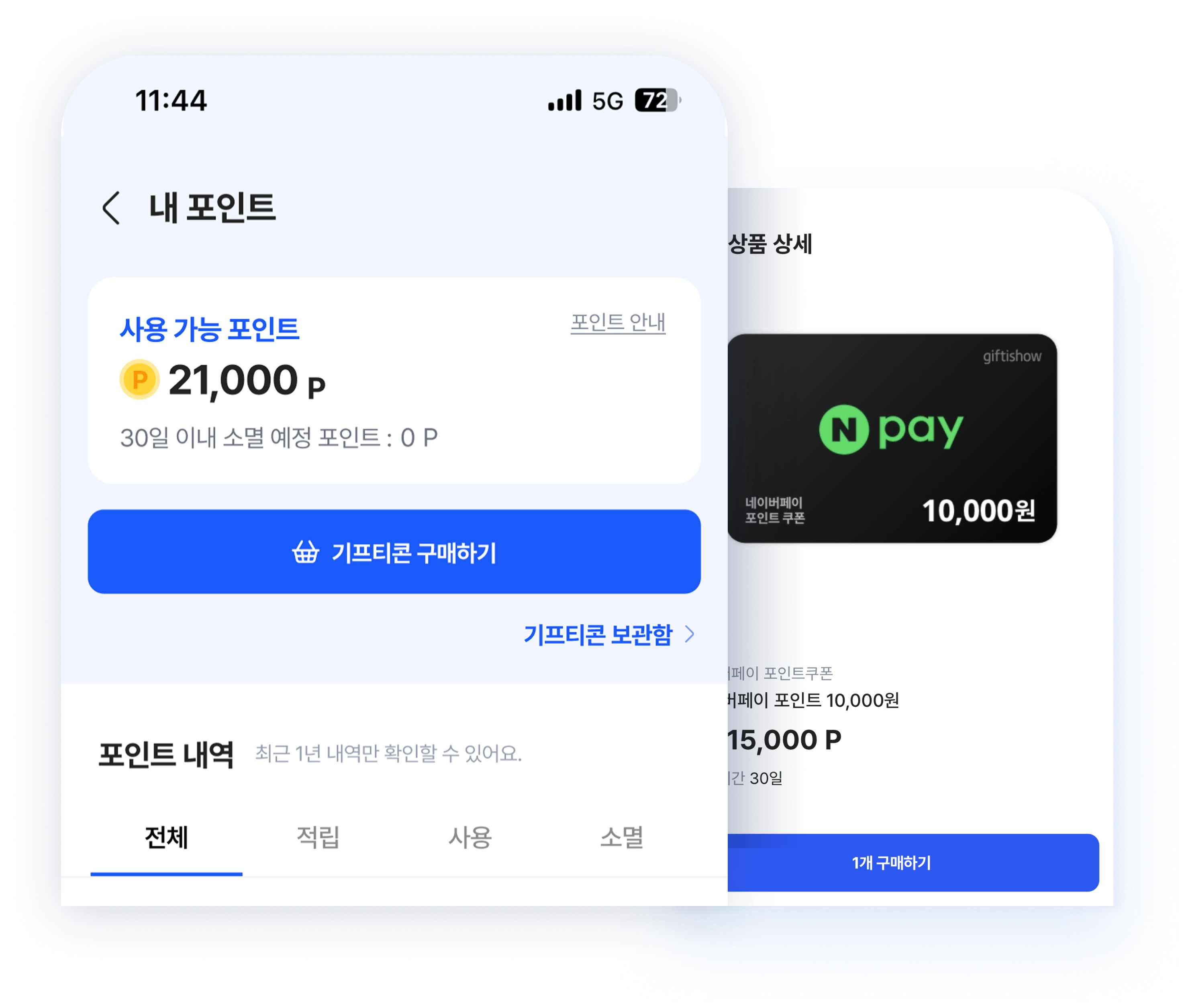 적립한 포인트로 원하는 기프티콘 교환